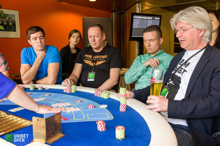 Across the room from the Main Event, the Casino Challenge is now well under way. Our online qualifiers have been whisked out here to Tallinn by the nice folks over at the Unibet Casino on an all-expenses-paid vacation, and now they’ve all got a shot at winning €10,000!